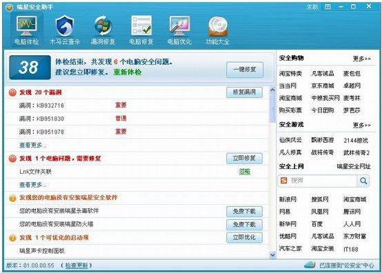 纠正电脑注册表或系统定位错误,恢复安全状态,自动收集、分析、拦截木马攻击、黑客入侵和网络欺诈。