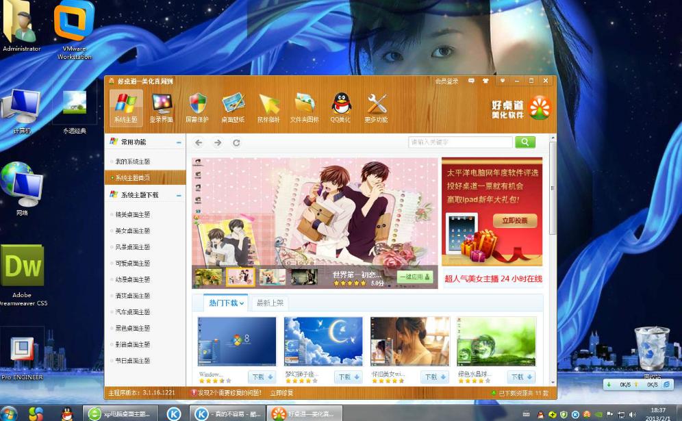 个性化的桌面。以33啦为例。33啦的电脑主题是国内首家以原创资源为主,凭借专业技术打造的别具一格的桌面美化产品,主题具有唯一性,创新性,独特性。为您紧张的生活带来一丝清新。