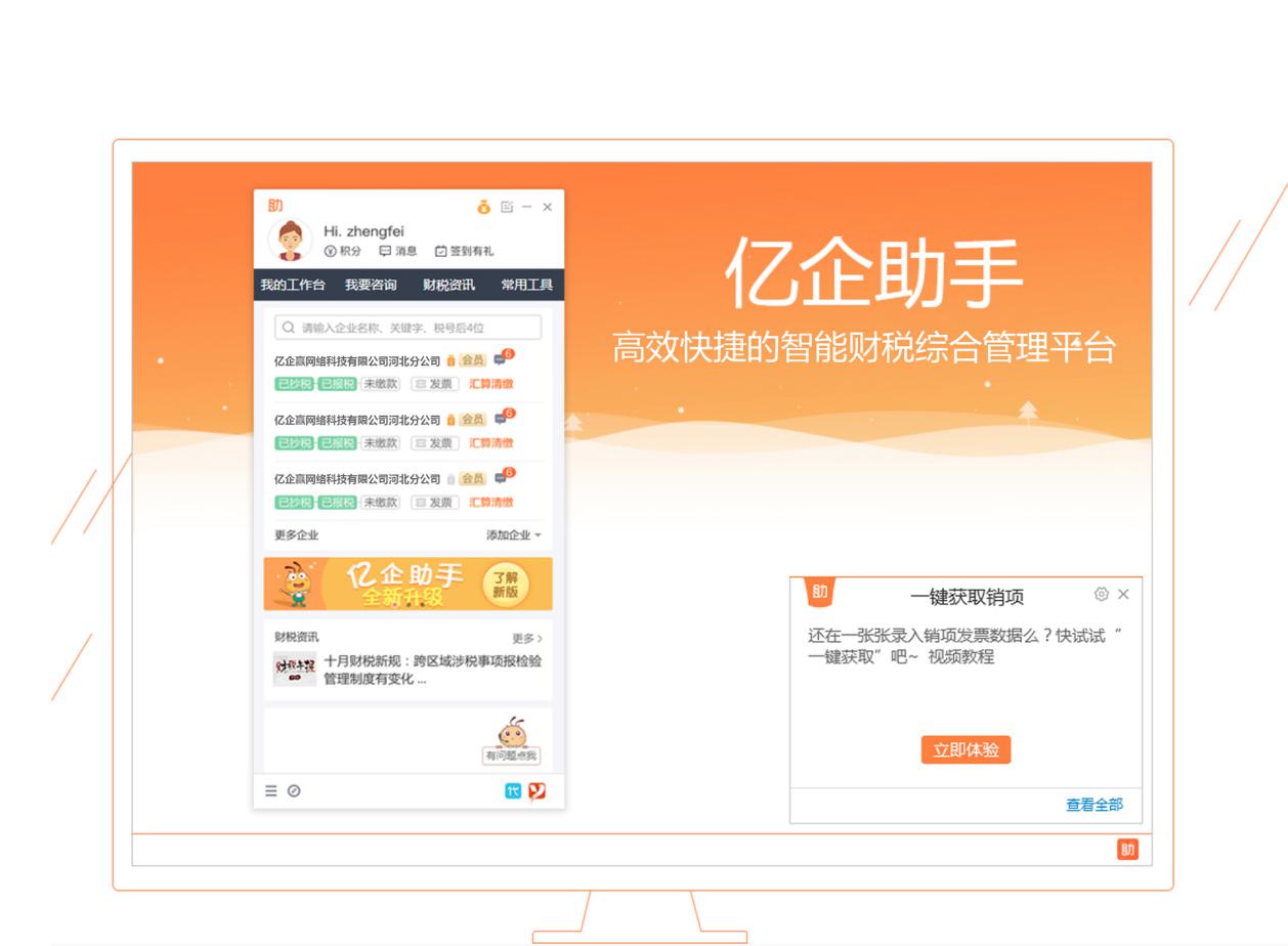 - 软件描述:亿企助手票账税一体化平台、纳税风险实时管控、发票一键勾选认证、随时随地移动办税[... [立即下载]