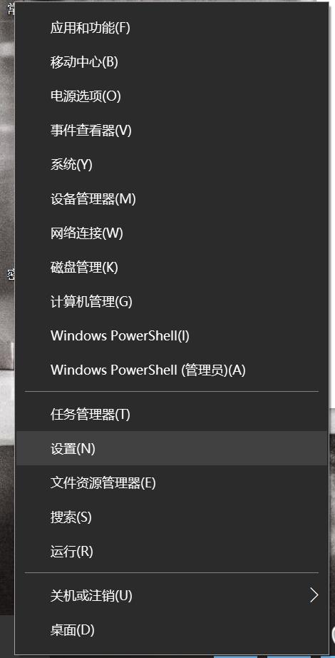 鼠标右键点击“win键”,在弹出的选项中单击“设置”,如下图