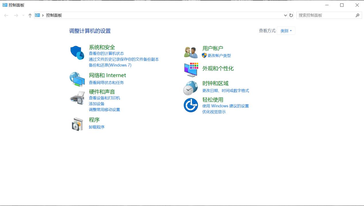 3、点击控制面板按钮后,弹出的窗口就是“控制面板页”了,如下图