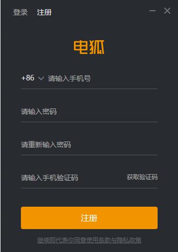 电狐帐号跟YY账号是同一个帐号体系,YY账号可以直接登录电狐,也可以在电狐上直接注册,但注册时只能选择手机号注册