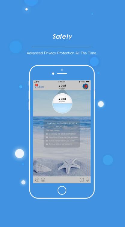 隐私:我们认真对待您的隐私,永远不会让第三方访问您的数据。对于那些对最大隐私感兴趣的人,Potato提供秘密聊天。秘密聊天消息可以被编程为从参与设备自动自毁。这样,您可以发送所有类型的消失内容 - 消息,照片,视频甚至文件。秘密聊天使用端到端加密来确保消息只能由其预期收件人读取。