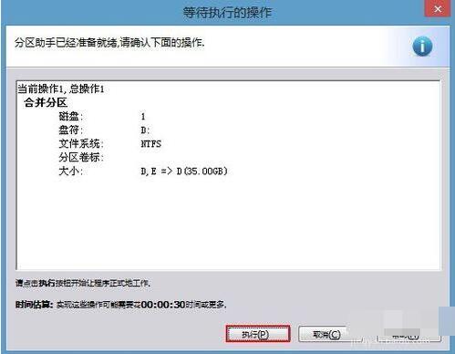 7、提交后出现如下截图:这是一个合并分区操作前的信息确认弹框,我们直接单击【执行】