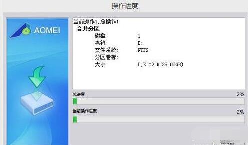 9、最后进入到合并分区进度条界面,我们耐心等其合并即可。