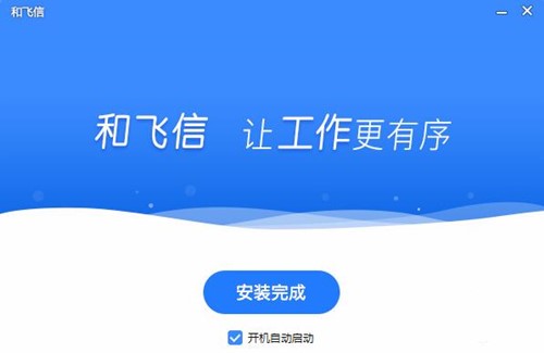 4、和飞信电脑版安装完成,您可以勾选“开机自启动”选项,勾选后,软件在您开机的时候会自动打开,不需要你双击打开,然后蒂娜及【完成安装】退出软件安装。