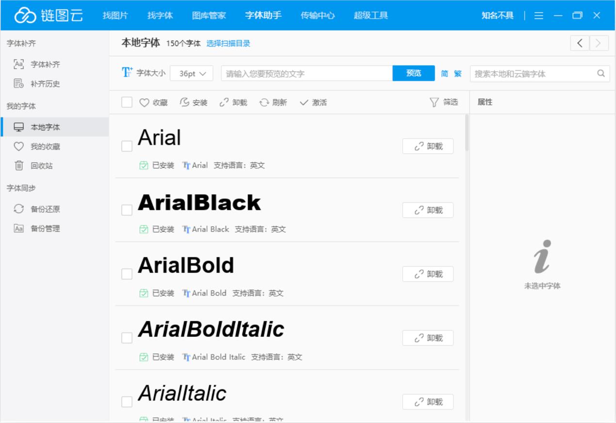 链图云字体助手是一款功能强大的电脑字体管理软件,用户可以通过链图云对电脑字体进行管理,提供了多种不同风格的电脑字体,用户可以自由选择卸载和安装,支持电脑本地字体检测、字体下载、缺失字体补齐功能,帮助用户轻松管理电脑字体。