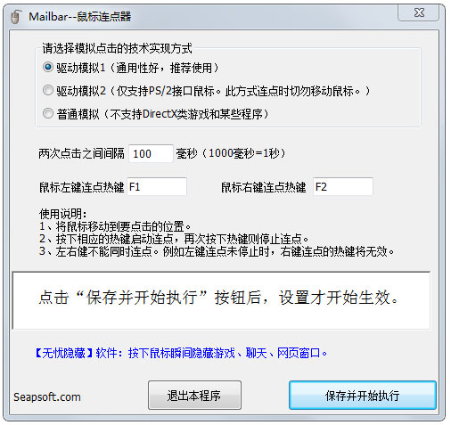鼠标连点器3000是一款可以模拟鼠标点击的免费软件,鼠标连点器3000提供了鼠标消息模拟、鼠标