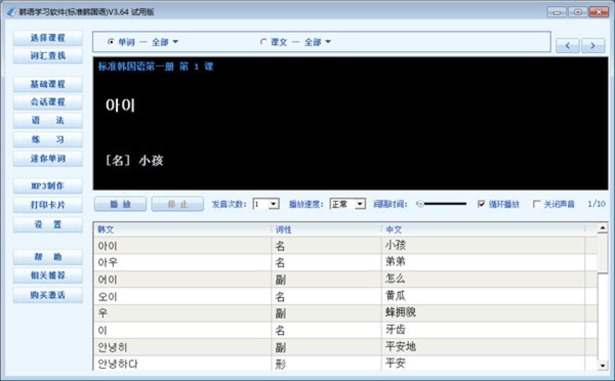 韩语学习软件标准韩国语电脑版是一款专业且实用的韩语学习软件。其特点是完全同步标韩教材、针对性强、适合韩语初学者和自学者,通过使用韩语学习软件标准韩国语电脑版可以帮助你解决单词记不牢,音调读不准,课文不会读,课下没人辅导等问题。有需要的小伙伴赶紧来下载吧!