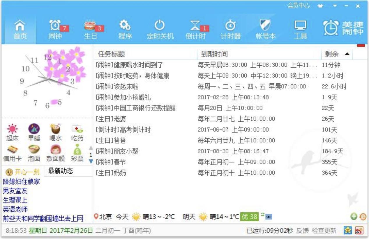 家人、朋友、老师、同学生日美捷闹钟帮您悄悄记下,温馨、惊喜常伴,支持农历哦!