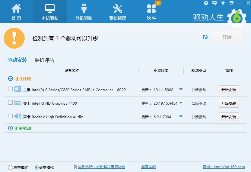 恢复、安装、删除、在线更新等实用功能。驱动精灵可以快速检测到系统设备驱动安装情况,并给出是否可以升级提示。