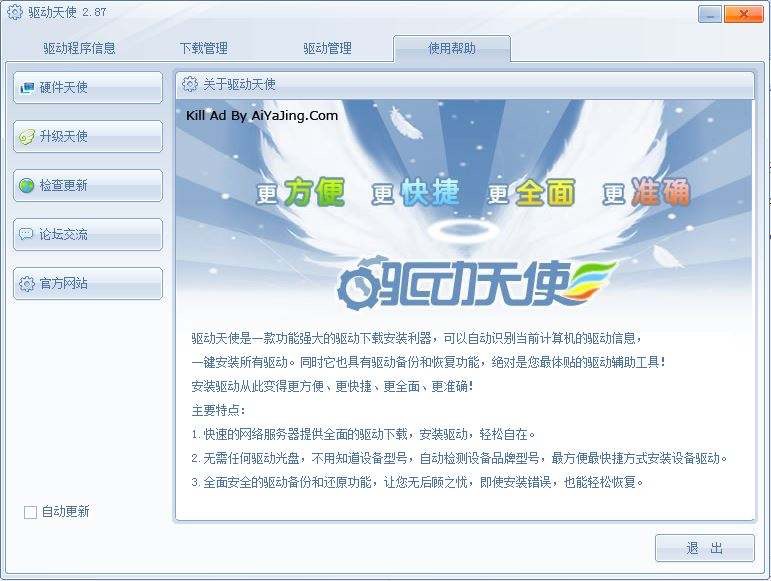 驱动天使是一款功能强大的驱动下载安装利器:它让用户不必再去生产商那里查找最新的驱动;一键安装各种CPU、主板、显卡、网卡、声卡等驱动;具备驱动备份和驱动恢复功能,方便又安全;拥有强大的驱动还原技术。