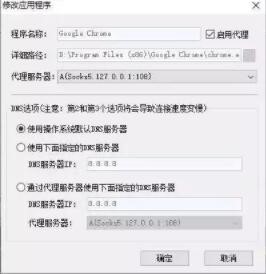 软件程序在访问网络的时候,都需要经过域名解析的操作。所以该代理软件在“DNS选项”中为用户提供了两种不同的DNS选择,分别是使用系统设置的DNS以及设定专门的DNS服务器进行操作。所有的设置完成以后点击“确定”按钮返回到主界面,以后用户只需要打开运行谷歌浏览器,就可以使用设定的代理服务来进行上网浏览了(图3)。