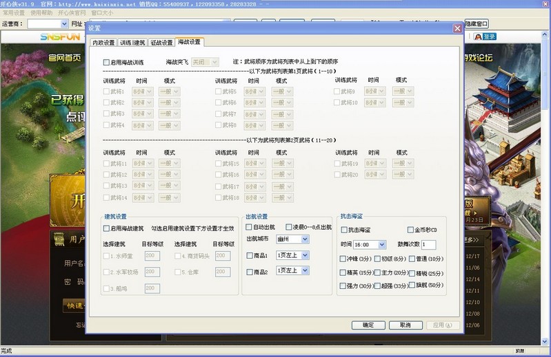 动画。 (每秒100次)欢呼声:自动选择最受欢迎的选手进行欢呼。投资开发:自动投资开发,选择金额最大的开发。一般训练-自动训练将领进行角色训练。您可以选择训练方法,训练时间,重生和突然飞行。 2 c)建筑物配置:自动更新建筑物,每30秒检查建筑物是否空闲征服-自动征服军团,洞穴和高级精英。 (您可以保留军事命令,选择是否要第二张CD。)