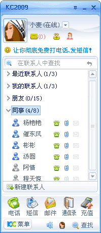 KC2009最新免费网络电话可呼叫全球任意手机、固定电话,支持手机上、电脑上拨打网络电话。