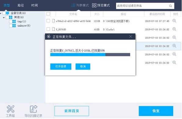 从扫描结果里搜索要恢复的文件,选择要恢复的文件,点击"恢复"按钮