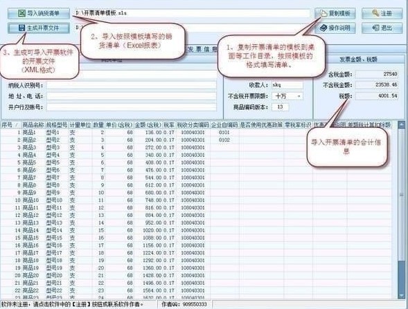1、本软件给予开票明细的导进作用,关键目地是为了更好地提升出具增值发票时,录入销货清单的工作效能,缓解开票工作人员的压力。