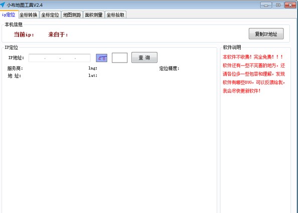 小布地图工具是支持百度地图定位的地图应用程序,利用工具可以大致定位用户的IP地址。小布地图工具运行在百度地图界面上,功能非常强大,赶紧下载试试吧。
