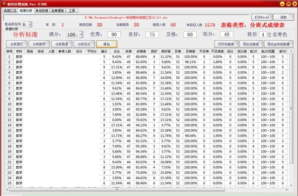 2.成绩汇总表。一般是学校的网上阅卷系统生成的。虽然网上阅卷和系统也有分析,但不符合本校实际。