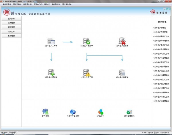 基础资料:提供产品资料、客户资料、供应商资料、人员资料等管理功能以及加工工艺、仓库与产品类别等设定功能,进行公司基本信息与资料管理。
