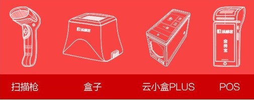 收银端支持扫描枪、盒子、云小盒PLUS、POS