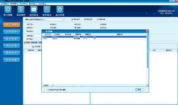 8、会员提醒功能:包括会员生日,会员到期,回访到期、护理到期、也可以自定义提醒。