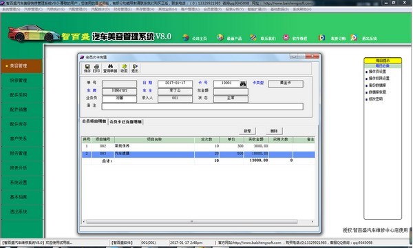 同时,智百盛汽车美容管理软件还支持可拭卡、IC卡等多种实体卡的写入,更加符合汽车美容店的实际管理需求。