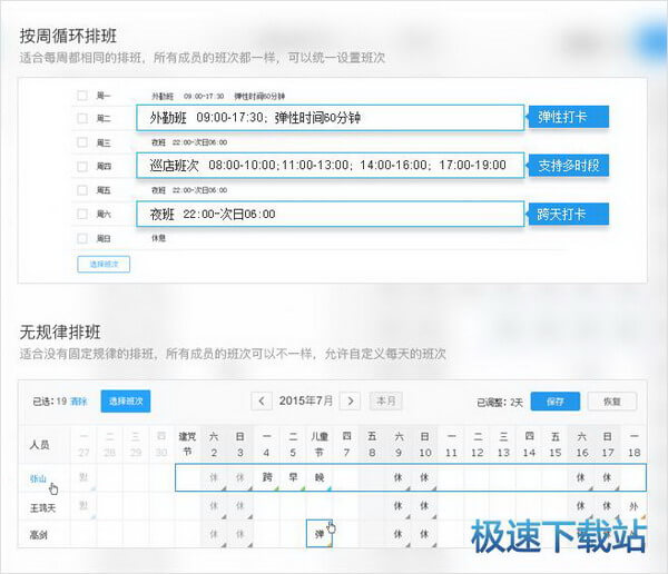 电脑、手机、考勤机多种打卡方式满足企业内外勤需求,考勤数据自动汇总到云端,便于考勤员查看和统计