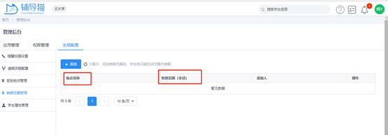 点击右上角“销假范围管理”可以灵活配置学生销假时的定位范围。