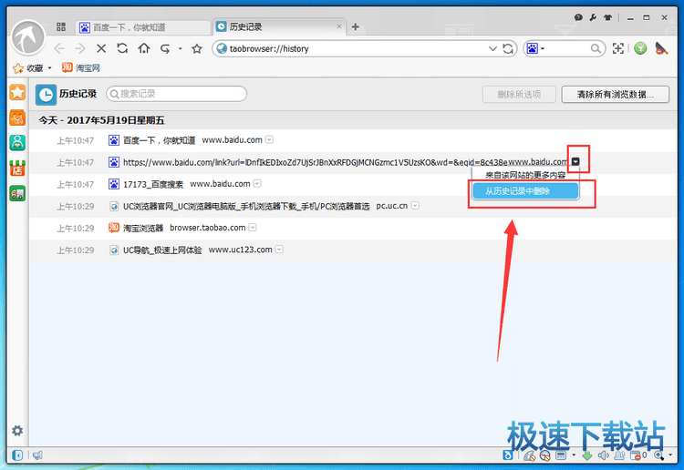 淘宝浏览器清理历史记录的方法: