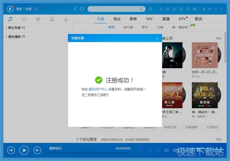 酷狗音乐账号注册成功,这时候酷狗音乐会提示注册成功。