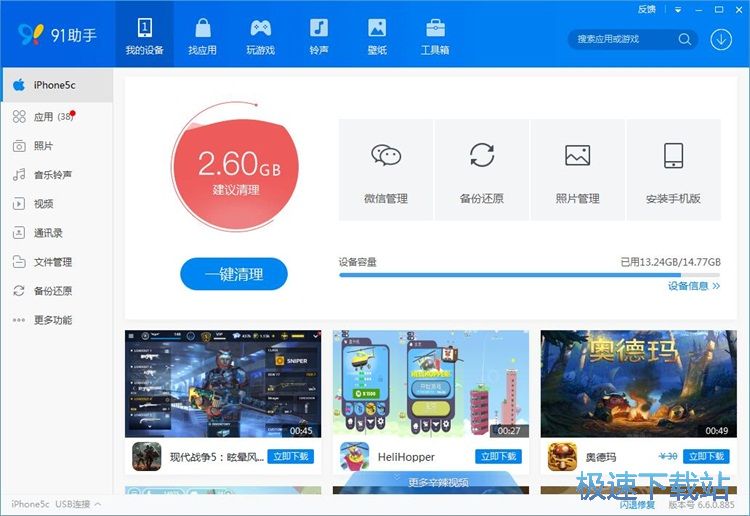 极速小编这一次就给大家演示一下怎么使用91助手下载安装手机应用和手机游戏吧。点击91助手主界面中的找应用,进入91助手应用中心;