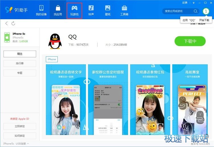 极速小编像找个好玩的手机游戏玩玩。点击91助手主界面顶部的玩游戏,进入91助手手机游戏中心;