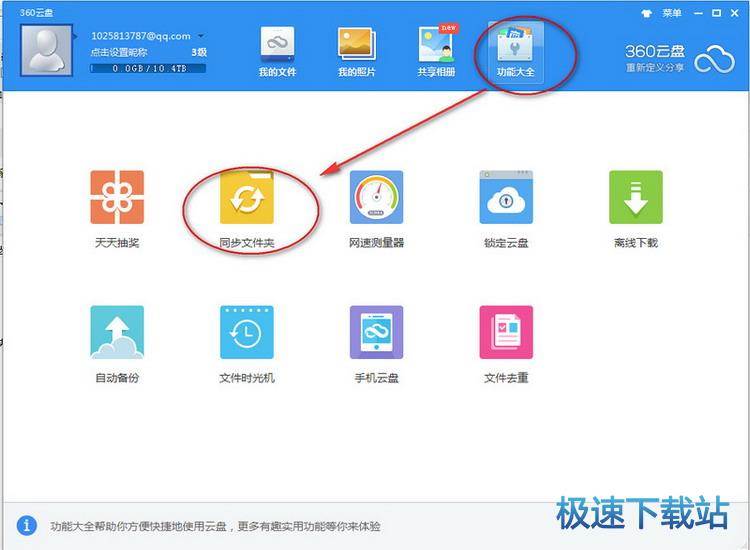 1、首先登录360云盘,点击功能大全,点击同步文件夹。