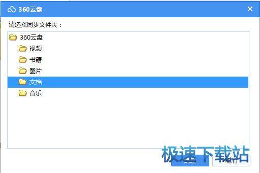 3、选择360云盘里要同步到电脑上的文件夹,这里选择“文档”确定即可。