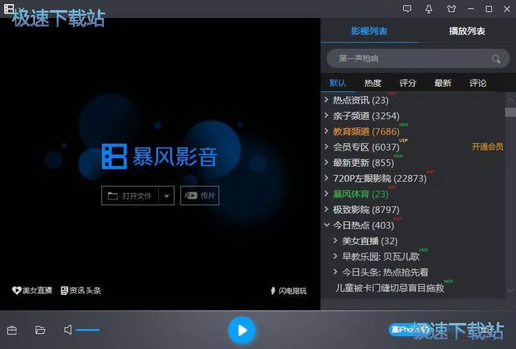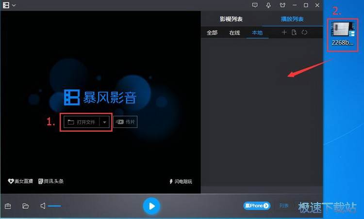 还有的朋友问要怎么样在暴风影音看本地视频?这里极速小编提供两个方法:方法一,在暴风影音播放器主界面找到打开文件按钮,然后选择自己想要打开的视频,就可使用暴风影音观看;方法二,按住自己想看的视频,将它拖到播放列表上,就可以播放了;