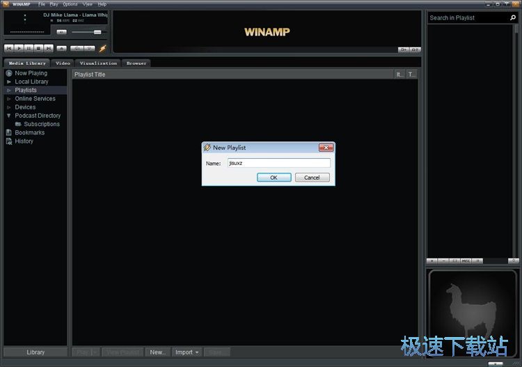 我们要设置播放列表的列表名称。极速小编输入了“jisuxz”。播放列表名称输入完成后,点击OK,就可以完成播放列表添加;