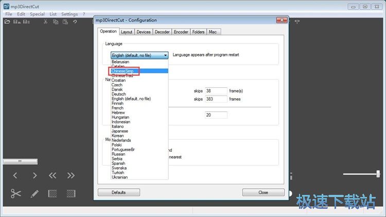 极速小编这一次就给大家演示一下怎么使用Mp3DirectCut剪切电脑本地文件夹中的MP3音乐吧。首次打开软件,我们可以看到软件的主界面目前是英文界面。软件支持将界面切换成中文,我们先将软件主界面切换成中文,方便我们操作软件。点击软件主界面的Configure配置,打开软件配置窗口;