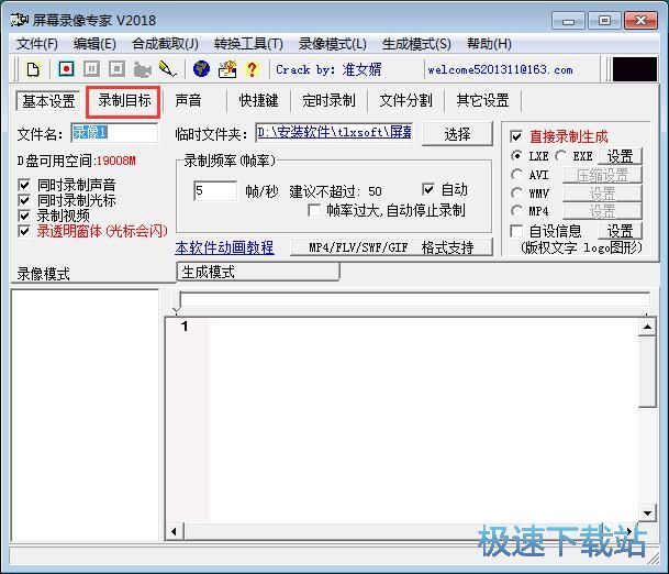 二.录制网络课程或课件(非视频内容),建议使用直接录制生成EXE方式(软件默认方式),录制帧数设置为5帧/秒左右比较合适,可以根据自己需要增加或减少,如果不是全屏的,可以设置录制目标。见第2条