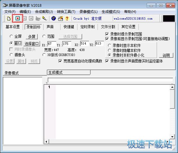 极速小编这一次就给大家演示一下怎么使用屏幕录像专家对电脑屏幕中的指定窗口内容进行录像吧。首先我们要选择屏幕录像的区域。点击屏幕录像专家主界面中的录制目标,打开屏幕视频录制目标设置窗口;