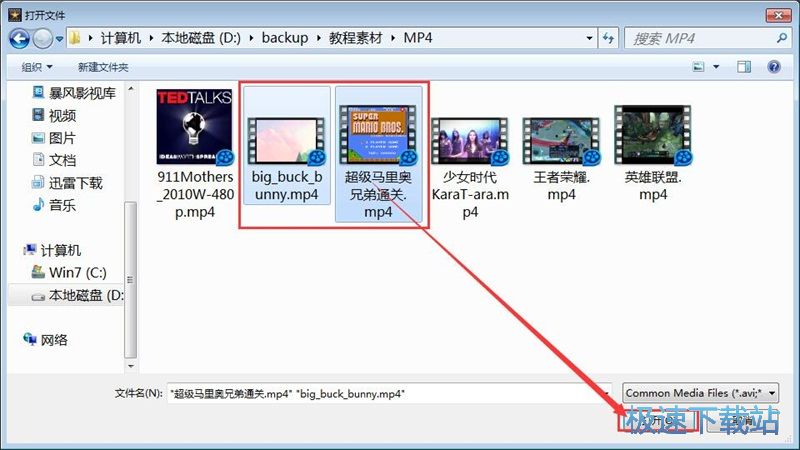 在打开文件窗口中,根据视频的存放路径,打开文件夹。选择想要进行合并的视频,我们可以同时选中多个视频文件。然后点击打开,就可以将视频导入到软件中;
