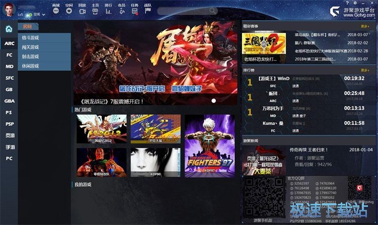 游聚游戏平台是一款电脑游戏平台。使用游聚游戏平台可以在线玩ARC、FC、MD、SFC、GB、GBA、PS、PSP等游戏。还可以和其他玩家在线较量;