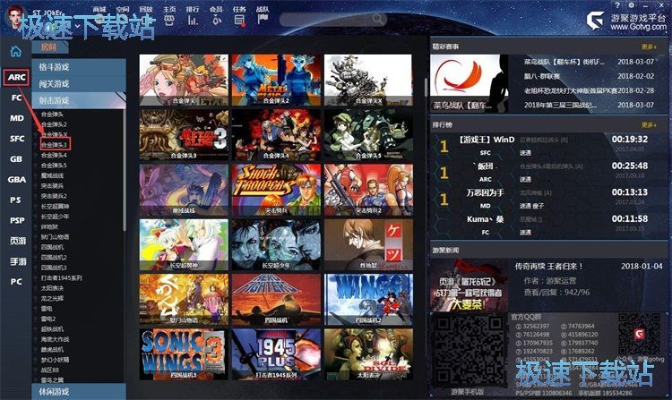 极速小编这一次就给大家演示一下怎么使用游聚游戏平台玩经典的街机游戏《合金弹头3》在ARC游戏分类中点击[射击游戏],找到《合金弹头3》;
