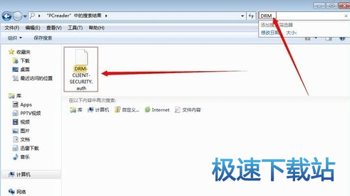 5、找到当当网阅读PC端的安装文件地址后,在左上角的搜索栏中输入DRM,找到DRM.........文件;