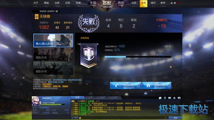 特工可以选择“单人/双人8V8”、“组队5V5”、“组队8V8”进行比赛,不同的开局方式将分别计算对应的天梯积分、天梯组别及奖励。