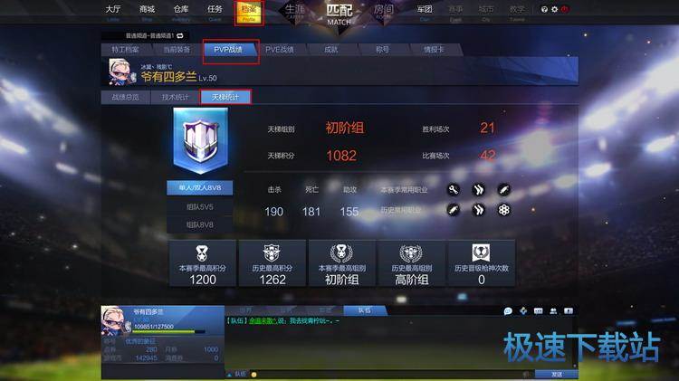 2.通过单击大厅中的“档案”选项(如图4),打开个人信息面板,选择PVP战绩下的天梯统计即可查看个人在天梯赛中的综合评定。