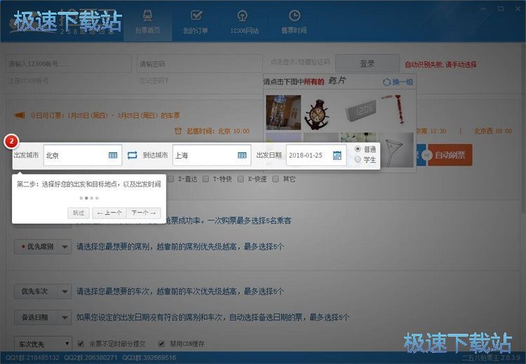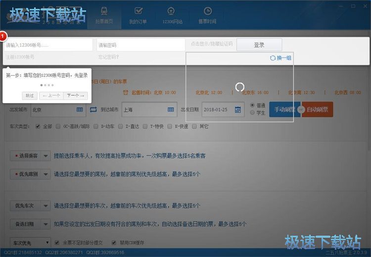 258抢票王是一款抢火车票神器。使用258抢票王前,我们首先要先登陆12306的账号,输入账号密码,通过258抢票王登陆12306;
