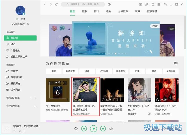 极速小编这一次就给大家演示一下怎么使用QQ音乐下载音乐库中的在线音乐吧。点击QQ音乐主界面中的歌单,进入在线歌单界面;