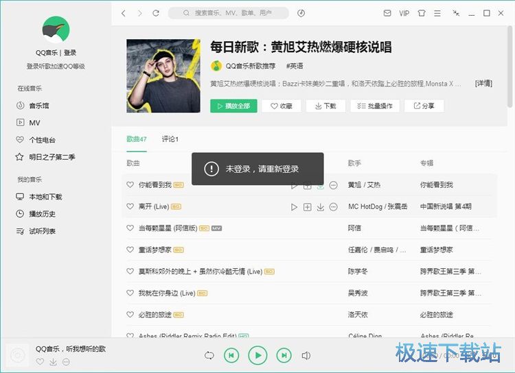 我们需要登录QQ音乐账号才能下载在线音乐。这时候QQ音乐会提示未登录,请重新登录;