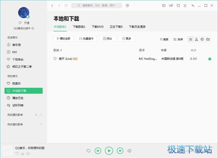 登录账号后,QQ音乐就会自动下载选中的在线音乐。这时候我们可以在QQ音乐的本地歌曲列表中看到刚刚选择下载的在线音乐;